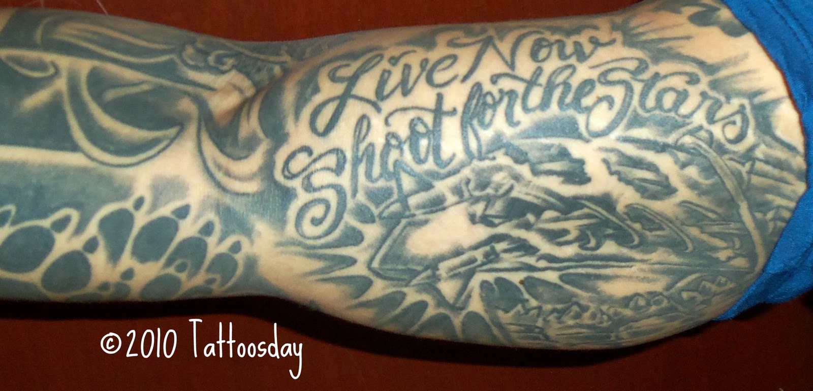He has the phrase "Live Now. Shoot for the Stars" inked on his biceps. This motto is a nod to his ambition as a business owner.